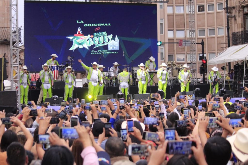 Morelia, Michoacán. Banda Maguey “abrió pista” en el megaconcierto de este jueves por el 482 aniversario de la fundación de Morelia, en la avenida Madero, frente a Catedral.